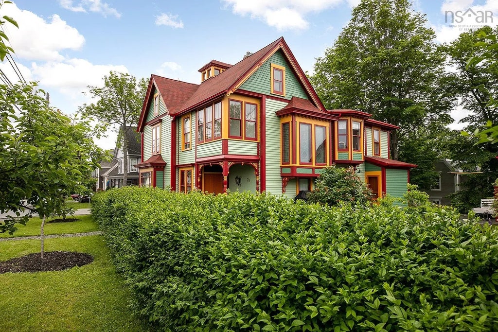 75 Dufferin Street, charming character home, circa 1875.  Nestled in the heart of the Historic Town of Lunenburg. This home has received a thoughtful renovation in recent years that has blended new and original features seamlessly. The gracious living space features generous and bright principal rooms and charming original elements throughout, including an impressive collection of stained glass windows, dramatic staircase, hardwood floors, elaborate millwork, a stunning custom chef’s kitchen with a large pantry. Upon entering the home you can come to appreciate the design. Beautiful main foyer filled with stained glass, central staircase, cozy living room with inviting wood burning fireplace, large dining room, main level laundry and well appointed kitchen with huge pantry. Convenient mudroom and 3 pc bath located off the main level patio. Enjoy the newly installed ductless heat pump also on the main level. Second level - Primary bedroom with 3 pc ensuite, three additional bedrooms, one presently used as a den, a 3 pc bathroom. Walk up to a spacious attic, offering ample space for storage. Appreciate the fourth level look out, a cool and comfortable place to relax! Outside spaces are equally stunning & fitting of Victorian-era garden parties, featuring a private hedged yard & garden, large deck & a circular stone patio. Completing the property is the matching 2-storey carriage house which provides studio space, single car garage on the main level, with a fabulous workshop space on the second level. Walk to the post office and stop at a cafe for your morning coffee and local news. Enroll in art classes, join a gym, curl, tennis, golf, boating and more. A 15 minute drive gets you to a number of beaches. One hour to Halifax or ninety minutes to the Halifax International Airport.