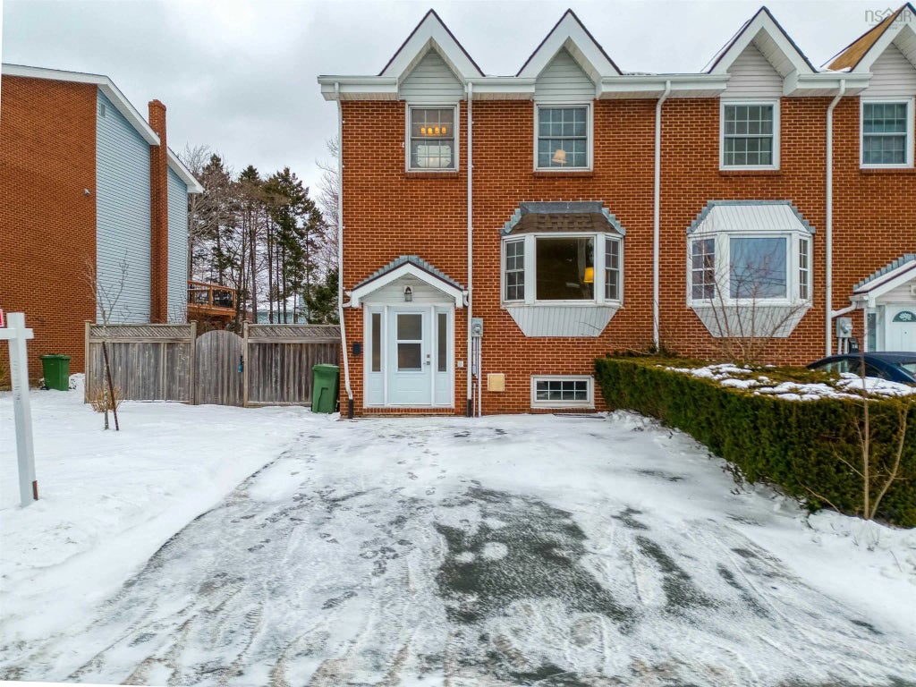 Gorgeous end unit townhouse with 4 seasons sunroom open off the kitchen/Dining Room-with deck off the sunroom & kitchen. Very private garden & lot runs well into the woods, Roughed in central vac and "No condo fees" here. Three bedrooms, master bedroom has ensuite bathroom, four bathrooms in total, great main floor layout with big bright kitchen, eating area and bonus sunroom to enjoy your morning coffee or watch the kids in the private FENCED YARD surrounded by trees at back. Central air is on top and main levels for your comfort and the lower level with rec room which has built in bookshelves, den/utility, another full bathroom and double car driveway. Electric thermal storage units that charge in the off hours to save money. They also radiate heat for a while when the power goes out. Fantastic school district, there is a really nice park/playground down the street for kids, Great area for walking, 2 minute drive to amenities (Groceries drug store, gas, McDonald's, Tim Hortons), Traffic calmed neighbourhood with speed bumps, Easy access to Bedford highway and Dartmouth, shipyard/naval base/downtown Halifax and to the airport. New front and back doors have built in screens that allow cross breeze through house, Sunroom at back and bay window in front are great for star gazing. Book your showings to view and own this beautiful property.