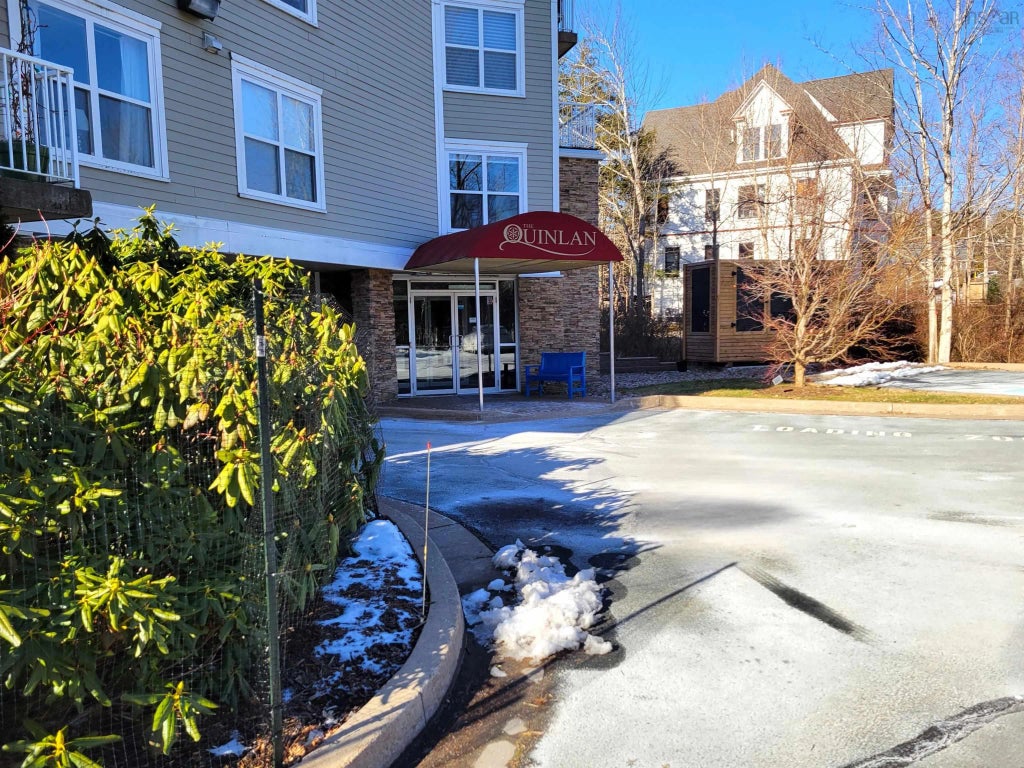 Adjacent a central treed park with duck ponds and walking paths, The Quinlan offers the mature buyer a gentle lifestyle in one of the most beautiful seaside towns in Atlantic Canada. Close to 1,400 sq. ft., this condominium is a corner, south-west facing, 2 bedroom + den, two bath home, basked in sunlight, and is one of the largest units in the building. The main rooms overlook the Maggie-Maggie River as it winds past the beautifully landscaped grounds, through the park, out to the ocean. The home features two spacious bedrooms, one with ensuite bath and large walk-in closet, and both overlooking the babbling river. The open concept kitchen-living-dining area has windows on two walls and offers an exceptionally generous sized living space with ample room for three separate seating areas. The main living areas have engineered hardwood floors and the kitchen is certain to satisfy the needs of any chef. The private den has a large south facing window and would be ideal as the at-home office, den or additional guest bedroom. Since being built this unit has had numerous upgrades. This home has indoor parking close to the lobby and elevator, a 4' by 8' storage locker, large spacious common entertainment suite for community gatherings, and the best neighbors one could ever meet. The Quinlan has the reputation as one of the best run condominiums in Lunenburg County. It is located a short walk through the park to the bank, post office, grocery store, drug store and dental clinic. The medical clinic is a short walk away.. The town hosts the famed "Three Churches", shops, a micro brewery and a variety of restaurants. One hour's drive to either Halifax or Stanfield International Airport. Mahone Bay has a vibrant community centre at the historic, former Mahone Bay School offering an exercise facility and numerous programs and courses for seniors. The community also features a public wharf, and summer pool and tennis court, The "Rails To Trails" travels through the heart of town.