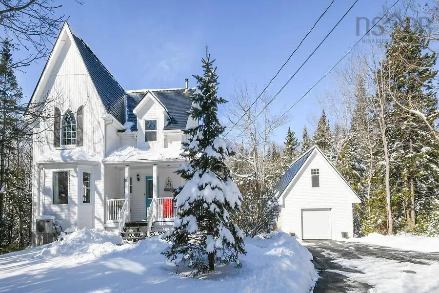 You'll love the peace and serenity of this private acre plus lot that is conveniently located minutes from Shubie Park, Burnside and Dartmouth Crossing. You will appreciate the attention to detail in this custom built home from the moment you enter. From the front covered verandah you walk into the spacious foyer open to the living room with propane fireplace and beautiful crown moulding. The formal dining room is a great size for entertaining with a french door that leads to the huge eat-in kitchen with island with veggie sink, tons of counter space, lovely window seat and door to the back deck. A full bathroom, large mudroom and laundry with its own entrance complete this level. The hardwood staircase takes you to the upper level with spacious primary bedroom with walk-in closet and door to the spa like main bathroom. Two additional bedrooms complete this level. The lower level has a rec room with built-in bar, office which could be a 4th bedroom, large storage room and walkout to the backyard. The detached garage is wired, heated with a ductless heat pump and has a loft that would make a great artist studio. Other features include new metal roof on both the house and garage, ductless split heat pumps, municipal water and new septic tank.