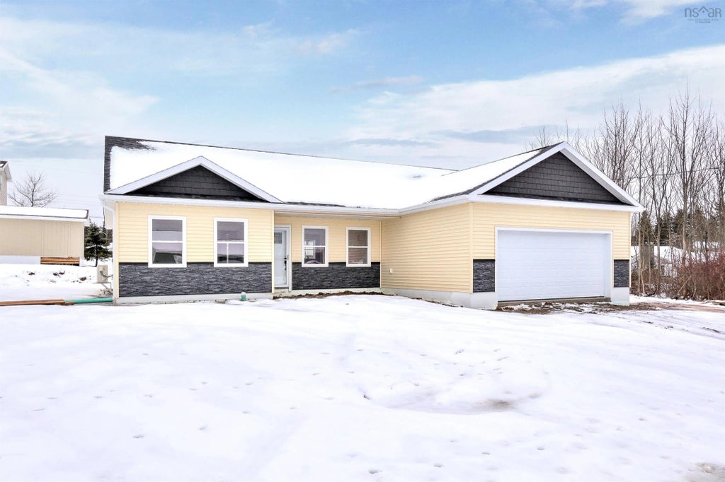 Welcome to 75 Ridgevale drive, located in a highly desirable area that's close to all amenities, play grounds, and in a brand new subdivision. This area is very family oriented and located in close proximity to schools and Sydney River. This energy efficient new construction home has in floor heating as well as a ductless heat pump for energy efficient heating and cooling year round. Open concept living on a single level with plenty of storage space and an attached heated garage. The home has vaulted ceilings and custom cabinetry. There is 3 spacious bedrooms with the master having its own ensuite and walk in closet. The main bathroom separates the second and third bedrooms and a spacious laundry room completes this homes lay out. The price includes HST as well as a front step to be completed prior to closing. Call today for your private viewing.