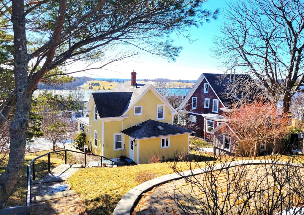 A house with three gables, facing south-west with views over front harbour, was originally built in 1926 for Sea Captain Henry Hebb and his wife Ella on a double lot severed from the Common Lands on Blockhouse Hill. Each house in Lunenburg is unique in its way; likewise this home has no twin. Its simple, old-fashioned form reflects the tastes of its builders for days gone by, the Golden Age of Sail. What was originally an open verandah positioned to watch the schooners as they arrived home to port, has been in later years enclosed as a sunporch and today serves as a sun filled respite for all seasons. A large archway from the sunroom opens to the living-room which likewise features a second archway to the dining-room "double-parlour style". The more recently constructed, eat-in kitchen is at the rear of house with its own rear entry from the outside patio. This home has a separate, formal front entry with a main floor bedroom suite with full ensuite in the east gable of the house. A beautiful, traditional staircase winds it way to a 2nd floor hallway with a seating area over looking the ocean - ideal for an office or reading nook beneath the eaves. The front bedroom overlooks the harbour and a connecting door to the adjacent bedroom could be closed off - gaining access to this room from an existing door off the hall - or kept open for a private office, dressing-room, yoga-pad or nursery. The family bath is at the rear with a third bedroom tucked beneath the eastern gable. This home features wood floors throughout, and has had full upgrades. There is a full basement with workshop corner and hot-water heating. Once a double lot, this property has a second access fronting Blockhouse Hill Road. The upper portion of the property, with beautiful harbour views, would be a development opportunity for subdivision or the construction of a garage with guest suite or studio office. A comfortable walking distance minutes away from a grocery store and community wharf !!!