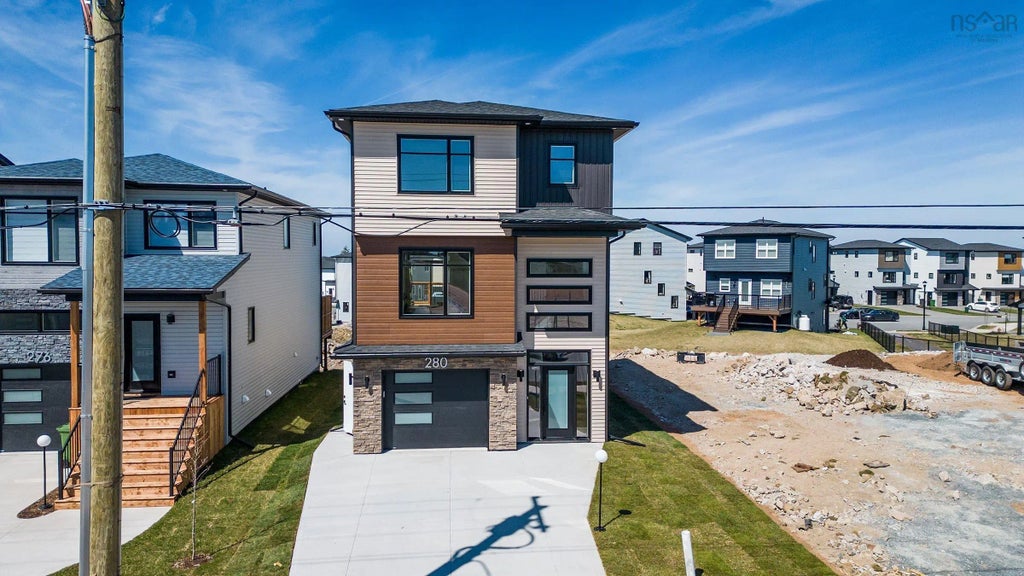 Welcome to your dream home at 280 Marketway Lane, located in the prestigious Brunello Estates. This stunning 3-bedroom property offers the perfect combination of luxury and comfort, with 2 full baths and 2 half baths to accommodate all of your family's needs. The primary bedroom boasts a spacious ensuite bath and walk-in closet for ultimate relaxation. The entryway and bathrooms feature beautiful ceramic tiles, while the main floor is graced with engineered hardwood and the upper floor and rec room are finished with laminate flooring. The hardwood staircase to the main and BR level adds a touch of elegance to the property. Enjoy upgraded Cold Climate Ductless Heat Pumps on the main floor, rec room, and primary bedroom to keep you warm and cozy during winter months. You'll love the custom shower and 5-piece ensuite, as well as the charming electric fireplace. The property also includes an allowance for Quartz countertops, a concrete driveway, and a beautifully landscaped lot. Step out onto the rear deck, which spans the entire width of the house, and take in the stunning views of the surrounding area. The property is located in a great school district, making it perfect for families. Brunello Estates is also home to a top-rated golf course, so you can practice your swing or simply enjoy the peaceful surroundings. And with the 10-year LUX warranty, you can rest assured that you're investing in a home that's built to last. Don't miss out on this once-in-a-lifetime opportunity to own your dream home!