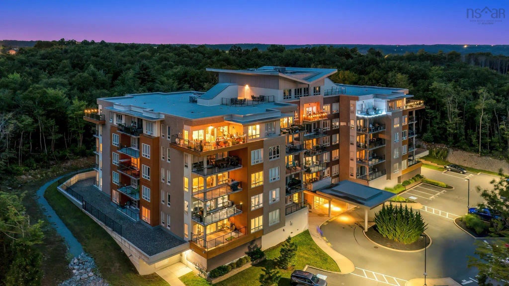 This stunningly well-maintained corner suite is the perfectly secluded sanctuary you have been waiting for. With afternoon sun and a sunset-kissed view of the tree’s off of this very private 183 SF balcony, this unit leaves you forgetting you’re anywhere near the city. This suite, with 2 bedrooms + den, has so many advantages, including; a modern white kitchen with shaker cabinets, quartz counters, and stainless steel appliances, a beautifully finished primary suite with walk in closet and ensuite bath, large windows throughout to bring in the natural light, and the added den for formal dining or your in-suite office. Domvista combines superior quality, contemporary design, and the beauty of nature with the most sought-after convenient location in popular West Bedford. Equipped with a fabulous gym with a view, a fully outfitted social room with kitchen, and additional roof top terraces to enjoy, this building will have you finding yourself never wanting to leave! This unit comes with not one but two parking spaces and a large storage unit. Come where you can take in the scenery and enjoy the trail walk throughout the seasons.