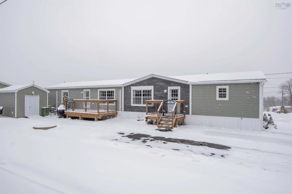 Welcome Home! This immaculate Maple Leaf Single-Section Modular Home (Mini Home) has been thoughtfully designed for a family, or downsizer! The floor plan is open concept with three bedrooms and two full bathrooms, and many extra windows - the space is bright, warm, and very inviting. Your view from the living room or from your front deck, is a wooded green space - this is one of the most private lots in Timber Trails Land Leased Community. This home has a private primary bedroom spa-like suite which is very large and has a lovely french door separating it from the rest of the house. The kitchen/dining area has lovely light, and an abundance of counter and cupboard space including a 5' island housing your large double sink and dishwasher. Your self-cleaning and "bluetooth" wall oven is a dream to cook with. The pantry in this house is very large and doubles as a utility room for your washer/dryer/hot water tank and Air Exchange. The driveway is paved and large enough for 2 or maybe 3 cars, and your beautiful gated decks are perfect for enjoying quiet outside evenings or welcoming guests. The community is circled by walking paths and is a close drive to either Sackville area, Bedford, Tantallon or downtown. Its perfect!