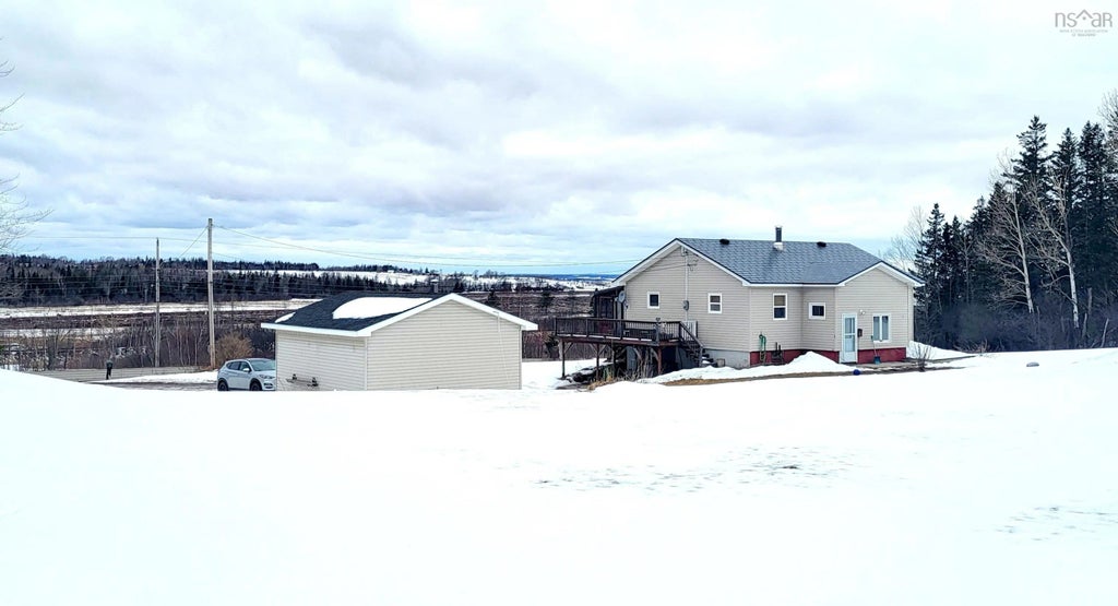 Bungalow, garage and 22 acres!! What a great property located only 10 minutes from amenities in the Town of Amherst NS. The house sits back high off the road. Lots of perks to this 2 bedroom home. large 13x16 eat in kitchen big enough to accommodate large dining table. Pick your heat source with wood furnace, oil furnace and ductless mini split heat pump providing optional heat as well as A/C in summer months. Metal roof, convenient basement walkout, circular driveway that goes right to the back of the house. And who doesn't love a screen room. Enjoy watching the beautiful sunsets over the river from the screened in room at the front of the house. Good ceiling height in the basement allows for possible living space expansion. This property has the bonus of town water!