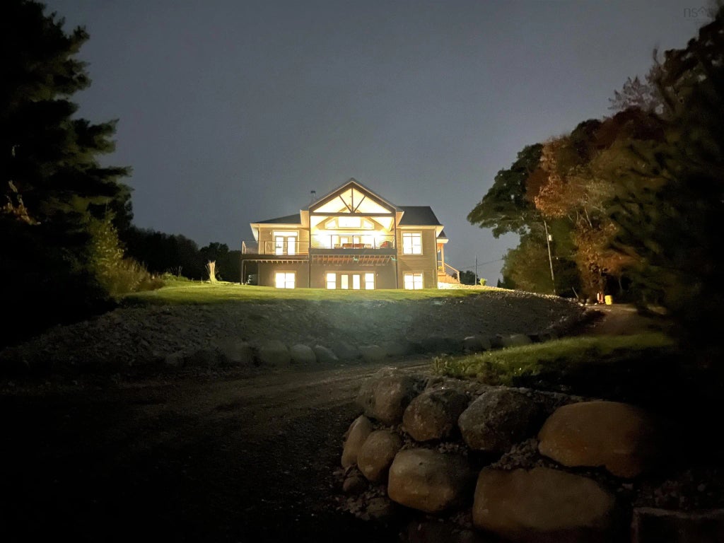 When viewing this property on Realtor.ca MLS # 202304331 Please click on Realtor's website link to the right for further information. Custom built 4 year old turnkey waterfront home with 4 bedrooms & 2.5 baths, finished on both levels with a walkout lower level. This gorgeous home, a stones throw from the Bridgewater town limit, crafted with an open concept main living area with river views from every room, 9ft ceilings & a vaulted 16ft ceiling in the spacious great room including a custom finished 50 inch wood burning fireplace. Enjoy stunning views of the Lahave River on the 12ft x 22ft x 16ft vaulted covered deck. Adjacent the great room is the large bright kitchen with skylights, walk-in pantry & 60 inch x 72 inch island with counter height seating. The kitchen is a chef’s dream boasting porcelain backsplash, industrial concrete countertops, double stacked wall cabinets, open shelving & a crafted cooktop vent hood. The primary bedroom has plenty of light through the large window and garden doors that allow access to the deck. Through the large barn style door, you’ll find the ensuite bath offering a dual vanity, 2 person freestanding tub, a large custom 2 person shower and a 5 x 8 walk-in closet with quality cabinetry. On the lower level, you’ll find warm chocolate cork flooring throughout, 3 bedrooms, a large entertainment room, a full bathroom, utility room and a flex room. The lower level also has 9 ft ceiling throughout making it feel extra spacious & bright. The attached 2 car garage is wired, heated & offers attic storage. The home is built on 1 acre with a waterfront parcel across the road offering approximately 150 foot of waterfrontage with opportunities for your boat dock. The home utilizes rainwater harvesting with a 5000 gallon storage system and a whole house water purification unit including UV disinfection!