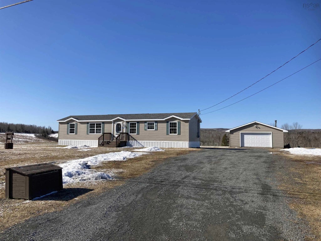 Beautifully well maintained mini-home on 1.8 acres of land featuring a 24'x24' double car garage and workshop. This home is move in ready with 2 bedrooms, 2 full bathrooms, and an open concept. The home has two heat pumps being used year round for heat and A/C in the warmer weather. The home sits on a fully landscaped piece of property 10 minutes outside of town providing a rural setting with the convenience of nearby amenities. The garage is wired and features a woodstove the perfect spot to work on projects or socialize with friends. This is a great opportunity on a great lot!