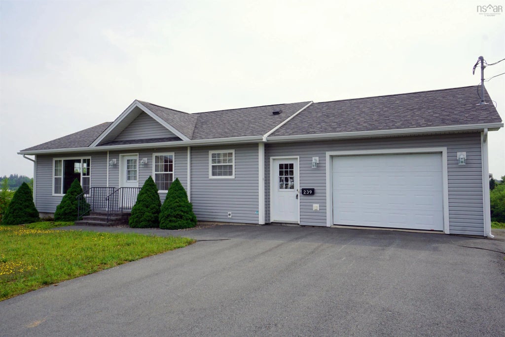 NEW HOME PEACE OF MIND, LUNENBURG. A rare find in a town known for century plus homes, this 12 year new bungalow features a spacious backyard with elevated country views, attached double garage, paved double driveway, and a full, bright, walk out lower level ready for finishing for extra living space or create an apartment for extra income. Over 1000 sq. ft. of open concept main floor living space, kitchen with ample oak cabinetry, berber and vinyl flooring, 2 bedrooms, 1 1/2 baths and laundry on the main floor. Move right in and enjoy all that Lunenburg has to offer.