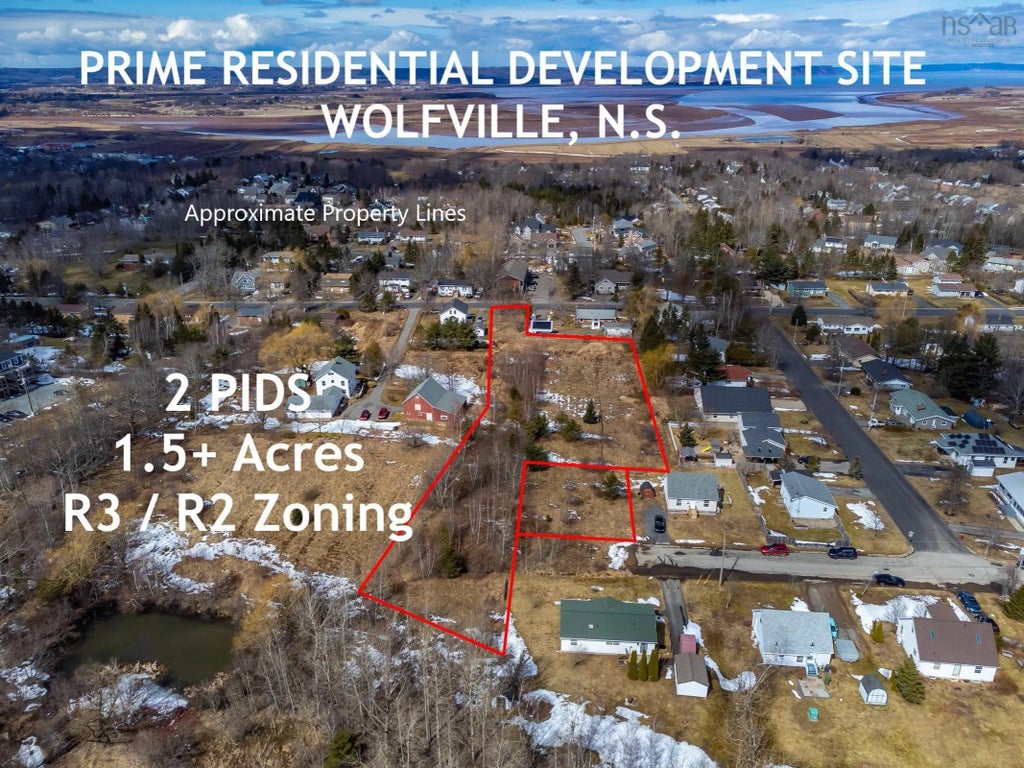 Prime residential development opportunity in the bustling university town of Wolfville, N.S. The offering consists of 2 adjoining lots. The first, a 1.5 acre, R3 zoned lot with road frontage on Pleasant Street. The second, a 0.15 acre R2 lot on Perry Bowles Street. It is believed the lots can be consolidated and then subdivided into 3 lots, each capable of holding an 8 unit building upon completion of the Town of Wolfville's Site Plan Approval Process. Buyer to verify plans with the Town of Wolfville. The property is located in a residential neighbourhood less than 1.5km to Acadia University. Town water and sewer available. Survey on file. Few vacant lots of this size and with this development potential remain in Town limits!