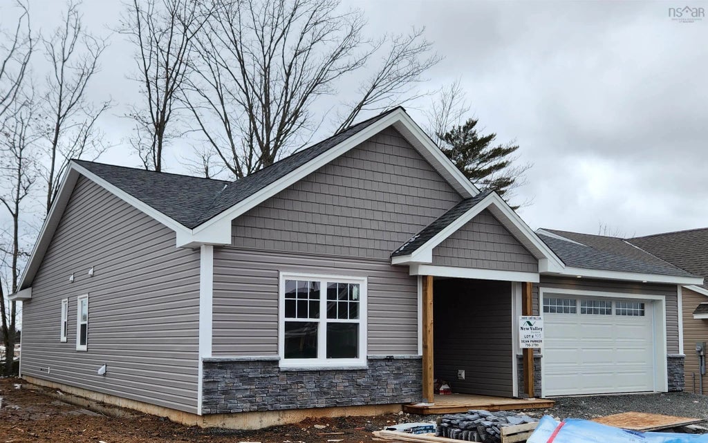 Welcome to Eagle’s Landing, where nature is at your back door. Take a bite out of the “MacIntosh” model built by New Valley Homes. One of the many enjoyable Garden Homes from the Collection. The location and curb appeal will have you excited about one level living on Covey Drive. With the focus geared towards empty nesters, that's what makes this street a little piece of paradise. Quiet, tranquil surroundings, 3 beds, 2 bath open concept with a gorgeous covered back deck to enjoy. Luxury Vinyl plank flooring, bright white kitchen with tasteful finishes. Heat pump for efficient heating and cooling. Lots of windows to keep the atmosphere, sunny and bright.Attached heated garage with utility room. All on Municipal services and county taxes Downsizing doesn’t have to feel overwhelming. Book today for your private viewing to be impressed. 10 minutes to Wolfville and all Major stores in the valley, Hospital within 10 minutes. Golf Courses, Curling, award winning Wineries, beautiful dining and much, much more all within close proximity.