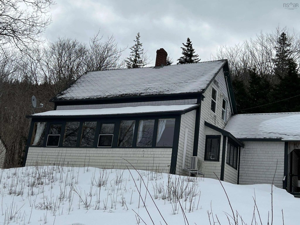 BACK ON THE MARKET!! This 2-3 bedroom, 2 full bath rural CABOT TRAIL home on CAPE BRETON ISLAND sits on 45 ACRES of mainly wooded hillside property and provides beautiful MOUNTAIN & SUNSET VIEWS. Main floor is OPEN FAMILY SPACES including Kitchen, dining, family and living rooms. Kitchen SKYLIGHTS, central WETT CERTIFIED WOOD STOVE, WINDOWED READING NOOK, full front WINDOW BANK. Main floor completes with a 3 piece bath (shower) & Porch/Laundry. Off the upstairs landing are 2 bedrooms with 3 doors for reinstalling wall = 3 bedrms!! More SKYLIGHTS. Although currently overgrowing, property has history of apple trees, blueberries & gardens. Attached OPEN WOOD STORAGE &/OR covered deck!!. Come and make this your NEW FOREVER HOME.