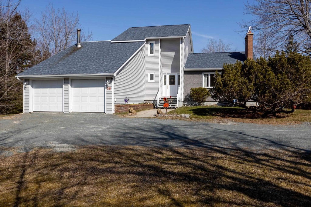Definitely not your average Joe! Located on a quiet and private cul de sac and sitting on a 35000 Sq Ft fully landscaped lot. This 3 bedroom 1 1/2 bath 2 story home with a unique layout was definitely a custom build. The main level features a cozy living room with an elegant brick fireplace and vaulted ceiling, a convenient kitchen and dining room, 2 pc powder room and the potential for one level living with the primary bedroom and laundry room on this level. The primary bedroom currently features a walk-in closet that used to be a full ensuite bathroom and could be returned to this configuration, it has its own patio doors leading to a private deck with beautiful views of the rear yard. Upstairs are 2 good sized bedrooms that share a 4pc bathroom, also on this level you will find a large storage closet. The basement features a den office, and a large rec room that could easily be brought back to its former glory. Finishing the level is a storage room and tidy utility room which is home to an updated oil fired forced air furnace. The attached double car garage has plenty of room for all your toys and has stairs leading to a storage loft, the front of the home provides lots of parking with a large circular driveway. This home is a must see and has a newer roof and mostly updated windows. In the backyard you will discover the old paved tennis court. This beautiful family home is jam packed with potential. Don't forget to check out the virtual tour!