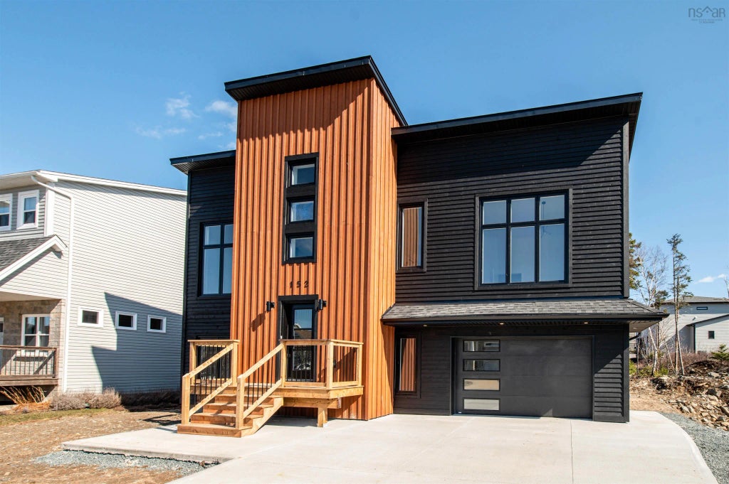 Located in the new Thistle Grove subdivision of Bedford. This New 4 Bedford home, has 3 full bathrooms. Enter into the large front foyer and go up a full flight of stairs, your jaw will drop when you enter the Living Room Kitchen & Dining area, the Vaulted ceilings from front to back will wow you. All the front windows will let lots of light in. Turn to the right and you encounter 3 bedrooms and a full bath. The Owners suite has a walk-in closet and ensuite. The few steps down from the entryway lead you to the Family room and guest suite, plus a full bath and laundry, Office, and a full-size Garage. This home is 100% complete, ready for immediate occupancy. Located In Thistle Grove with all underground wiring. 10 Builder warranty in place.