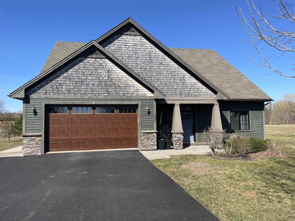 Live large in this exquisite, modern craftsman inspired home design! Featuring an 18 ft ceiling in the great room, kitchen & dining area. Beautiful big windows to allow an array of natural light! Kitchen is tastefully designed with a bank of cupboards/counter space, stone backsplash, pantry and a quartz centre island; the living room is cozy and the dining room opens to a private entertaining area featuring a stone patio with a fire pit and in-ground pool. This fabulous fenced area is ideal for family gatherings & furry friends! The backyard beyond the fence, offers close to 1/2 acre which is ideal for recreational play! 4 bedrooms (2 on the main level including the primary suite with bath & walk in closet); 2 upstairs with ductless heat pumps; 2.5 baths in total; in floor radiant heat on the main floor, heated floor in upstairs bath, time of use meter; separate laundry on main floor; storage areas throughout, attached double (heated) garage and utility area! Desirable neighbourhood of Falmouth, easy commute to Metro or Valley! Close to Avon Valley Golf course, Tennis Courts, Ski Martock & Windsor amenities! Don't miss out on this opportunity!