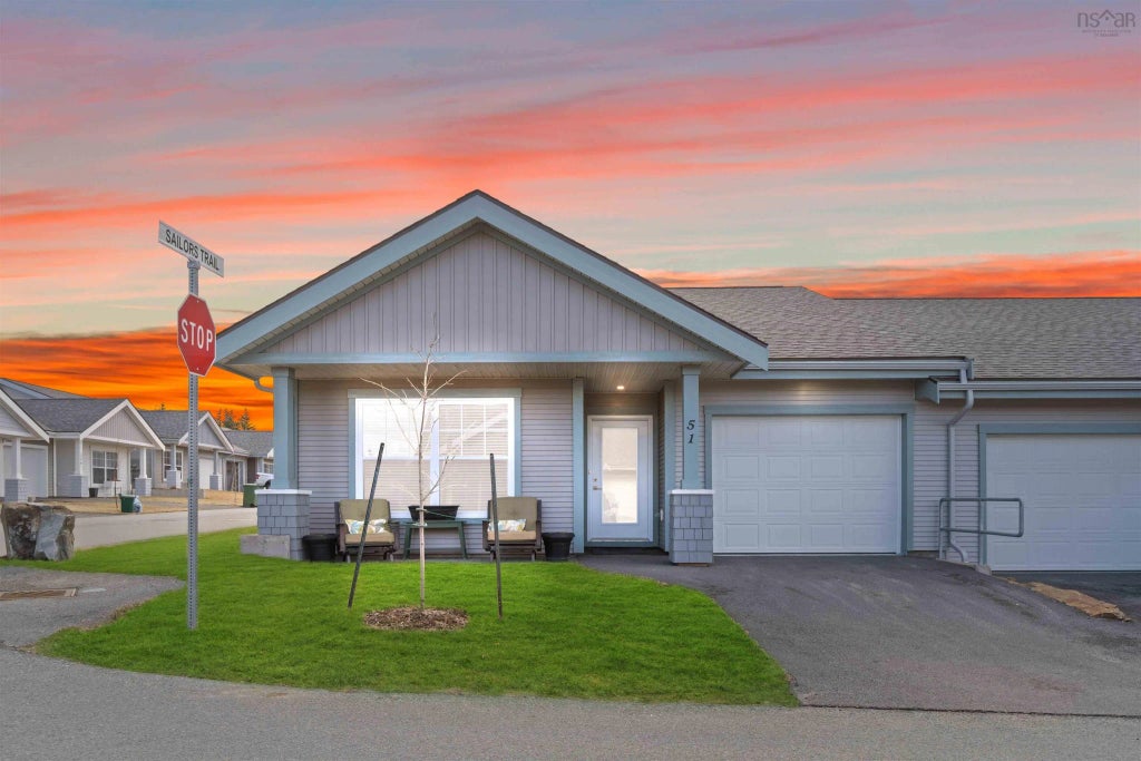 Welcome to 51 Candytuft Close, located in the beautiful Eastern Passage community. This stunning corner bungalow townhouse condo boasts upgrades throughout, including a modern bright kitchen with ample cabinetry & pantry, two three piece bathrooms, hardwood flooring, a heat pump for efficient heating and cooling, extended patio with privacy fence and garage. As you enter the home, you will be greeted by a spacious and bright great room that leads to an open concept living, dining area and kitchen. The modern kitchen features stainless steel appliances with wine fridge, custom countertops, and breakfast bar. The dining area leads to the living and for additional entertaining you'll love the backyard patio, perfect for outdoor entertaining and relaxation. This condo offers two bedrooms, including a spacious primary bedroom with a large walk-incloset and a 3 piece ensuite bathroom. The second bedroom is ideal for a home office or guest room, and there is a second 3 piece semi-ensuite. The condo also features a garage, providing secure and convenient parking, as well as additional storage space, paved driveway and the condo corporation has visitor parking as well. As part of a well-maintained condo community, residents of 51 Candytuft Close enjoy access to a range of amenities, including exterior maintenance services, a social room for gatherings, and a refreshing pool. Eastern Passage, Nova Scotia is a charming coastal community located just a short drive from Halifax, Burnside, CFB Stadacona and near CFB Shearwater. With its picturesque lighthouse, scenic boardwalk, and beautiful beaches, Eastern Passage is a popular destination for tourists looking to enjoy the great outdoors. Located in the heart of Eastern Passage, this condo offers easy access to a range of amenities, including shops, restaurants, parks, walking trails and beaches. With its modern decor, low maintenance living, and convenient location, 51 Candytuft Close is the perfect place to call home.
