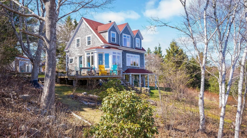 Cabinet maker's handcrafted home with spectacular ocean views. Three bedroom 2.5 bathroom, set back nicely from the road for privacy. Fine woodwork and artistic detail throughout. The entry way has a powder room with a repurposed wooden door made into a pocket door. The powder room sink is handmade by a renowned local ceramic artist. Custom kitchen with views of the islands in the bay with open concept kitchen/dining/living area all with ocean views. Deck space off the bay-windowed dining area. Plenty of space for entertaining family and friends. Cozy warmth in winter from the woodstove and solar gain from large south-facing windows. Gentle ocean breezes cool in the summer. Up the beautiful staircase to an office/den/guest bedroom area. Jack-and-Jill ensuite shared with this area and the large primary bedroom. Elevated ocean views from the primary bedroom are breathtaking. Downstairs there is potential for rental or an in-law suite with separate grade-level entrance. Close to Chester and easy access to Halifax on the Rails-to-trails or mostly twinned highway. floor plans, room sizes, virtual tour available on Realtor.ca. Please leave offers open for acceptance for minimum of 48 hours.