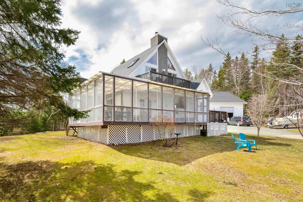 Set on a hilltop overlooking St. Ann's Harbour on the world famous Cabot Trail is this 1.5 storey home featuring a spacious screened in wrap around deck off the main floor and a balcony off the second story. The main floor has a mudroom, kitchen, dining room, living room with wood fireplace, utility room, bedroom and a full bath. Beautiful hardwood flooring thru-out. French doors and sliding patio doors open out from the living room onto the deck. A custom spiral staircase leads to the second floor pine loft, an oasis of natural light and warmth with vaulted ceilings and 5 skylights. From the large family room with beautiful propane fireplace are 2 sets of patio doors leading to a balcony with beautiful views of St. Ann’s Harbour. French doors lead you into the master bedroom with vaulted ceilings, air conditioning, and a picture window overlooking nature. A full bath with jetted soaker tub completes the loft. Finished basement has 2 bedrooms, rec room, powder room and laundry. Perfect for a home business, the two storey garage is 44 x 34, with woodstove, 8 arena lights, 2 - 12 foot overhead doors, and a generator wired directly to the house for back-up power. It also has a partially finished 12 x 44 second storey loft with separate entrance. The driveway and large parking area are concrete. Outside is a fully sided 14 x 16 woodshed with hydro and another 8 x 8 storage shed with hydro. Gravity fed well with plenty of water. The property is private, surrounded by trees, has a rock garden and fire pit. House can be turn-key with everything you need to start your Cape Breton adventure. Five appliances, all window coverings and many furnishings. The Cape Breton Highland National Park is only 1 hour away. Schools, hospital are only 30 minutes away.