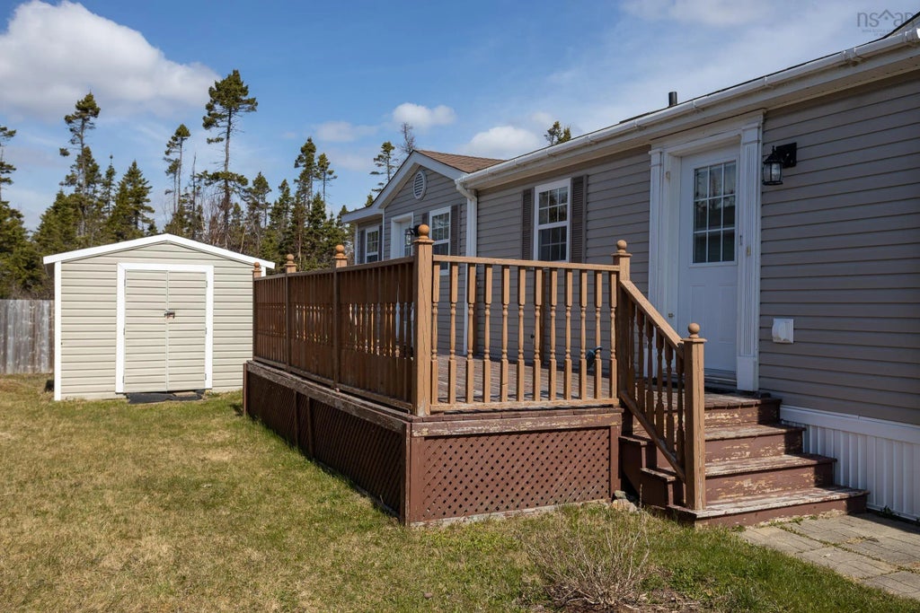 Welcome to the neighborhood of Birch Hill Estates! This 15 years young, 1,184 sq ft mini home is a gem and is ready for a new owner. Pulling up to this 3 bedroom, 2 full bathroom mini home you will find a 2 car paved driveway situated on a level lot that is landscaped and contains a 10' x 12' ft shed. Entering the home from the large front deck you will find yourself in a spacious and open concept living space that has been impeccably maintained. The kitchen is laid out perfectly with a large corner pantry, lots of counter space, plenty of cupboards, and a skylight that lends natural light to the attached dining area. The adjoining living room with its piano window and vaulted ceiling is big, bright and a great space to make lots of lasting memories. Heading down the hallway you will find a conveniently placed laundry closet, a built in desk space, a full size bathroom and 2 well sized bedrooms. On the other end of this smoke free/pet free home you will find the perfect primary suite with its own door to the yard, large windows, his and her closets that go the length of the room and beautiful French doors that give access to the large ensuite complete with a corner jet tub and separate glass stand up shower. Located in a well run mini home park this home is close to all major amenities and is a great find.