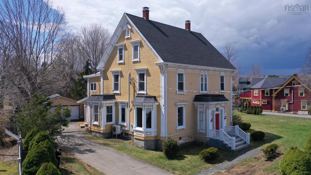 Circa 1881 Victorian-style stately home in the heart of the beautiful seaside Community of Mahone Bay, famous for the three churches and lovely place to call home for the locals and a bustling tourist destination. This house is truly unique, with multiple possible uses. With commercial zoning, this 9-bedroom home, including two fully contained recently renovated guest suites, is sure to generate premium rates and high occupancy. Centrally located on Main Street, just a stone's throw from the marina and a 2 min walk to the downtown core, this home is a landmark in Mahone Bay. You could live in the main house, which boasts original wood trim, wide plank softwood flooring, high ceilings, and ample square footage—recently upgraded throughout with new paint, a new kitchen and bathrooms, a roof in 2022, and much more. You will enjoy a formal living and dining room, an additional den/office or family room, plus a new kitchen with new appliances on the main level. Climbing the grand staircase, you will enjoy three large bedrooms on the 2nd level and two beautiful bathrooms. On the third level, there are four bedrooms and an additional bath. Outdoors you will enjoy a sizeable mature backyard with a double garage and a shed that you could turn into another unit. The in-ground pool could be filled in or repaired—endless possibilities in one of Mahone Bay's most spectacular addresses. You will want to take advantage of this one. Call today for your tour.