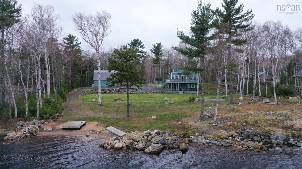 Incredible lakefront year round home! This home boasts privacy on 2 acres with trees and long driveway which continues past oversize 2 story garage down to water. 190' shoreline with private floating dock (too soon to be in the water). Imagine yourself relaxing on either the upper or lower decks and gazing over the water or sitting by the firepit in the evenings. This home is an open concept main floor consisting of mudroom with custom cabinetry, kitchen with 4 new appliances, dining and living room with cosy woodstove and patio doors to upper balcony deck. Down the hall is main 4pc bath and the primary bedroom with walk-in closet and 3 pc ensuite with laundry. Downstairs are 2 more spacious bedrooms - one with walkin closet, 3 pc bath and family room with walkout to the lower deck. Storage/utility areas are also found on this level. Road is private with yearly fees for upkeep. This home has been well maintained and is ready to go for your family summer fun! 30 minutes to Chester or Windsor and under an hour to Bedford. See list of inclusions in documents. Virtual tour and more pictures are coming soon.