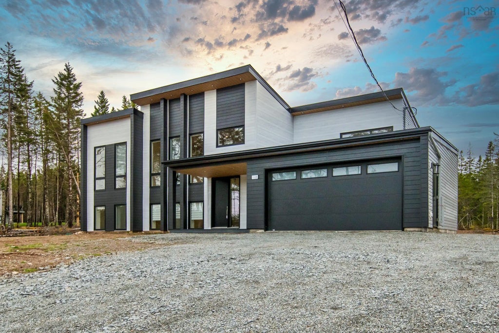 This amazing split entry 5-bedroom house is situated in the interior of Hammonds Plains, Nova Scotia. Surrounded by woodlands, this newly constructed ultra-modern home (1-yr old) features bright high windows offering a panoramic view of the scenery. The main level has an open- concept design that lets natural light flow throughout its living room and kitchen/dining area. The living room is a perfect space to gather around its state-of-the-art fireplace in the company of family and friends. Patio doors lead off the living room onto a large wooden deck, a great outdoor retreat. A center island between the kitchen and dining area is the ideal spot to dine and entertain. Quartz countertops give an added touch of style to this home. Its spacious master bedroom has the luxury of a large walk-in closet and a full en suite with sliding doors leading to the back deck. On this level, two additional bedrooms are designed for maximum comfort and relaxation. There is a beautiful bathroom with glass shower doors and an attractive modern vanity here. On the lower level, an expansive family room is a special space for indoor fun. There are two warm, comfy bedrooms located here with a modern bathroom to refresh and revive. This house has even ducted heat pump. Maintain vehicles and gear throughout the year in its enclosed garage. This home is only a short drive to shopping, dining and all other amenities.
