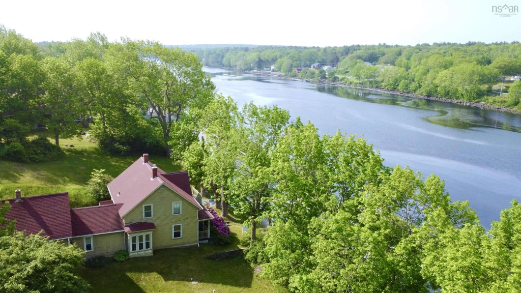 An atmosphere of simplicity and elegance characterizes this circa 1854 home, nestled on 4.12 acres along the shore of the Mersey River in Milton. The Gothic Revivalist architecture of the home is evident in a bright interior with tall windows, bold but simple mouldings, built-in cabinetry, beautiful hardwood floors and uniquely ornate fireplaces in the front parlour and formal dining room. A comfortable family room with a handsome fireplace at the heart of the home leads to a breakfast nook that doubles as a home office. The bright family size kitchen at the back of the home features a large centre island and lovely views of the river. All the bedrooms on the second level enjoy views of the river and gardens, but the second floor balcony is particularly nice in the warmer months to take in elevated views. A large utility and laundry room is conveniently located just off the kitchen with a stairwell to a finished attic and private balcony that looks over the tall woods and gardens at the back of the property. With a little imagination, the space could be transformed into an inspiring studio or a cozy home office. There is also access to the yard off the kitchen and a private south-facing deck that offers a lovely space for relaxing and outdoor entertaining with family and friends. The lot directly across from the house has 457 feet of river frontage and a wharf for docking a boat or launching a kayak or canoe. The Trestle Trail, with seemingly endless kilometres of picturesque trail for walking and cycling, can be accessed just down the road at Pine Grove, a 54 acre community nature park along the river. You can follow the footpath from there all the way into Liverpool, where you’ll find major amenities, shops, restaurants, The Astor theatre, farmer’s markets, fitness centre and more. High speed FibreOp Internet is available.
