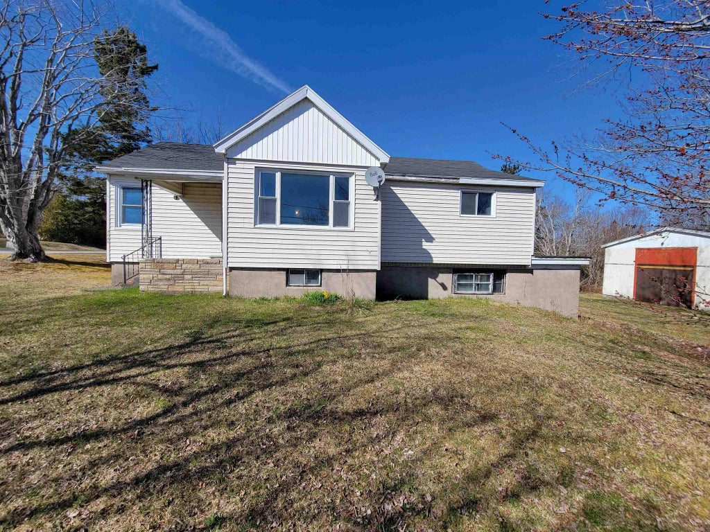 Three bedroom bungalow or 2 bedroom with a den! This home is situated on approximately 5 acres of land and will make an ideal starter home! New flooring in most of the home, a newly renovated bathroom, large eat in kitchen, and a large detached garage complete the package. Book your appointment today.