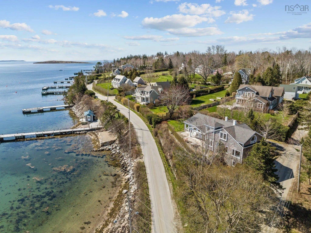 Relaxing on the deck, morning coffee in hand, I gaze at the sparkling waters of Chester’s front harbour as Junior Opti sailboats are dancing past from the Yacht Club. A few of the neighbours have decided to take a dip at Freda’s Beach. The white sand and shallow waters combined with all that sunshine is an ideal place to swim. As it will be lunch time soon, a stroll over the bridge and through the village is on my agenda. Looking forward to catching up with folks walking through Chester. It’s a few blocks to The Jib, Kiwi Café, Rope Loft or the Focsle, so I’ll have to decide. Afterwards I’ll slip into the bank and then over to the post office to mail a letter. Such is life here at 7 Freda’s Hill Road. Convenient, easy, and incredibly scenic living. This exclusive Chester Peninsula property also has all the best attributes going for it. Over two thousand eight hundred square feet of living space, five bedrooms, two full and two half bathrooms, a forty-foot-long ocean side deck & stone patio, landscaped side lawn, a fully fenced/hedged property providing the ultimate in privacy, and two single bay garages. Walking in from the waterside entrance on the main floor, the interior space captures the ocean views marvellously. The open concept layout includes the living room, dining room, breakfast nook and sitting room. Conveniently, around the corner, is a spacious kitchen with lots of cabinets, counter space, plus a skylight. The second-floor primary bedroom with ensuite bathroom & reading nook (with a lighthouse view of the Mahone Bay islands) is the perfect place to unwind. A two-bedroom wing with two half bathrooms and laundry is where the kids can go, and an additional two bedrooms with three-piece jack and jill bathroom would work perfectly for in-laws & guests. With the limited supply of high-end properties in the village of Chester, opportunities like this won’t last long, so make your move!