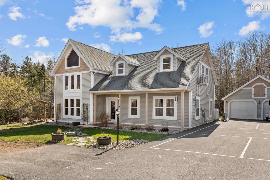 Welcome to this custom timber framed detached home on 1.4 acres of treed privacy within the much loved golfing community of Lost Creek. This meticulously crafted Cape Cod modern farmhouse home has glorious light throughout and a natural and warm look and feel, with a majestic wide open interior layout, cathedral ceilings and a heavy timber aesthetic. The main floor space leads from the foyer into the functional living area, a brand new kitchen and island, an eat-in dining space and a luminous sunroom currently used as an office space overlooking unspoiled nature and opening up to an expansive low level wraparound deck. Main floor laundry room, a good size bedroom and a 4 piece bathroom complete this main level and beautifully contrasts with the hand finished timbers, stone flooring and modern appliances and upgrades. Upstairs has a great layout and features two bedrooms, including the primary, walk in closet, and jet tub. With a double detached garage and a freshly paved driveway, this functional yet charming one of a kind home will easily accommodate the lifestyle needs of a busy family and create the wow factor at every given opportunity!