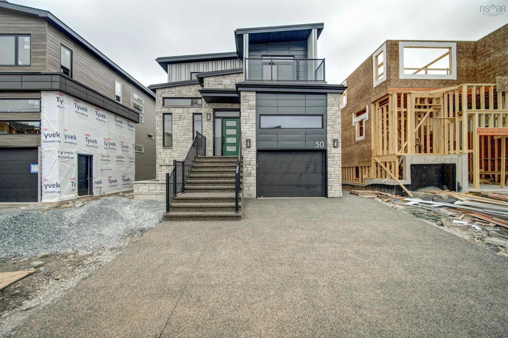 Cresco presents the Fuji on Puncheon Way in Brookline Park – and it is ready for move in this spring! Unique to the street, this contemporary design has modern wall paneling on the façade, plant beds and a balcony off of the master bedroom suite! This 3390sqft 5 Bedroom, 4.5 Bath 2 story features a dream kitchen with double waterfall countertops, cabinets to the ceiling, and is designed for a wall oven, 36” cooktop, and oversized fridge. Not to mention the walk-in pantry. The main floor also features an office, and open concept floor plan with a 50” electric fireplace surrounded by tile in the living room. The mudroom has lockers, plenty of storage space and the powder bath is upgraded to impress. The attractive master bedroom has a 5 piece ensuite including full custom shower. The second bedroom has a custom shower in it’s ensuite as well. The lower level has a 5th bedroom, oversized rec room with wet bar and walkout, and the heating system is upgraded to the latest technology – an high efficiency VRV heatpump with multiple zones, and has natural gas backup. The exterior is finished with exposed aggregate front steps and driveway and is complete with a 26ft long rear composite deck upgraded with glass railings.