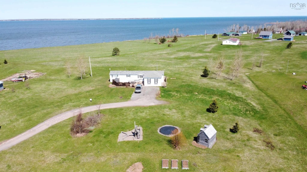 Here we have a three bedroom mini home with two full baths and over 2 acres of land. This home is sitting on a concrete pad, and has beautiful ocean views and deeded access to the beach just a few steps away. The foyer is barrier free accessible and leads to two bedrooms and laundry, then large living room open to the kitchen. At the other end of the home is a large master bedroom with a modern full ensuite. There are patio doors and a deck off the kitchen, just the right place to enjoy the summer breezes. If you enjoy golfing the Brule Point Golf club is across the road, for yummy food the Bread Basket is a quick walk, and Tatamagouche is a mere 5 minutes for all amenities. This is a beautiful home in a great location!