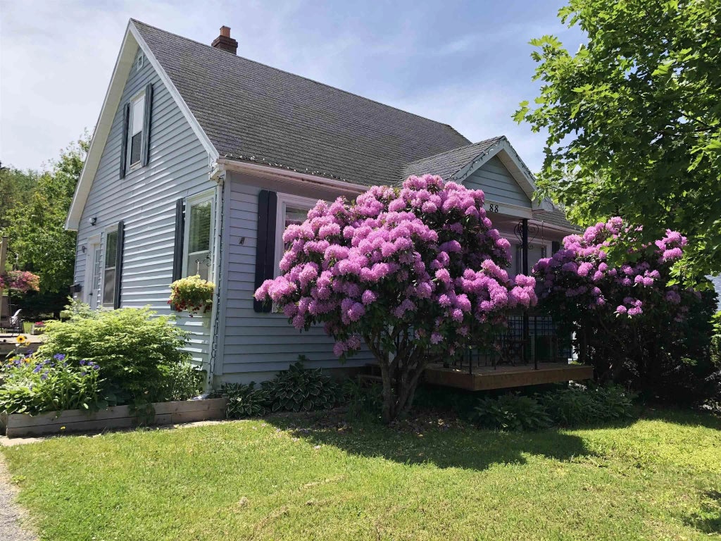 Welcome to this 72 year old 1.5 storey home in the heart of New Minas and in walking distance to shopping and all other amenities. Sitting on a large village lot, the property has two driveways, one on either side of the house, is nicely landscaped with a rear deck, privacy fence and a large backyard. The exterior is vinyl and has a new roof, eavestroughs and aluminium clad facia as well as new vinyl window inserts on all three floors(Maintenance free). The present owners have created a cozy, open concept eat-in kitchen/living room area with ample kitchen cabinets on the main with a 4pc main bath and two bedrooms. Hardwood flooring with ceramic in bath. The second floor has a large master bedroom (freshly painted) and a separate storage area. The basement is fully finished and presently utilized as office space. Area consists of a lovely family room that can be closed off from the large, bright office space with walk-out exit. A spacious 3 pc bath/laundry and a storage area complete this floor. Good quality carpeting. Electric baseboard heating with two heat pumps(one on main + 1 upstairs) as well as a pellet stove in basement. Vermiculite under fiberglass insulation in the attic. Book your showing today!