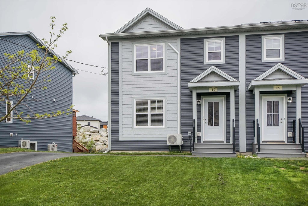 Welcome to family friendly Governors Brook and 77 Onyx Crescent - a beautifully upgraded semi-detached with 4 bedrooms and 3.5 bathrooms. Enjoy all the benefits of new construction, plus the many upgrades that have already been completed. Step inside to a large foyer and an open concept main level. Relax in your living room around the electric fireplace or cook a masterpiece in the kitchen which boasts quartz countertops, a large island, and a pantry. Socialize with family as you enjoy the spacious dining area which has a walkout to the deck. Head up the hardwood staircase to the second level where you will find a well sized primary bedroom that has an ensuite with shower and double sinks with quartz countertop; plus a walk in closet. There are also two additional bedrooms, a laundry room, and a full bathroom. On the lower level there is another full bathroom, a bedroom, and large family room with walkout to the backyard. Extremely efficient, this home has a heat pump head on every level! Radon mitigation system installed last year! Governors Brook is surrounded by over 150 acres of natural conservation land and has direct access to the McIntosh Run Community Trail. Watch the wildlife, explore the nature trails, hike back to the lake for a swim, or walk across the street to the playground. Conveniently located just 15 minutes to downtown and 2 minutes to all amenities of Spryfield.