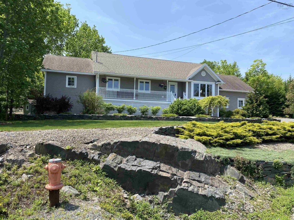 This beautiful 4 to 5 bedroom bungalow has beautiful custom additions that need to be seen! The area that is sure to please is the great room with vaulted ceiling, skylights and walk-out to the outstanding gardens. A wisteria vine covered pergola sits on the flagstone patio surrounded by easy care gardens. The Kitchen has lots of Corion counter space, loads of cupboards, a china display cabinet and a pantry. A huge window provides views of the garden. A patio door takes you out to the 2 level deck with a gazebo, outdoor barbeque centre, lots of room for backyard parties. The green house sits on a concrete pad that can support a hot tub. The spacious open layout includes a formal dining room. Primary Suite with a big window that gives you a garden view and lots of sunlight. The vaulted ceiling expands the open feel. A cosy electric fireplace sets the mood. There is a walk-in his and hers closet with twin dressers. The ensuite with air tub and glass shower door completes the atmosphere. Wide white oak hardwood floors on main level and laminate downstairs and ceramic in baths. There are 2 other bedrooms and main bath with a linen closet on the upper level. Downstairs are 2 other bedrooms, a large office, exercise room, storage room, laundry and huge workshop with a door to the shed in the backyard. The detached 24 X 24 double garage was built in 2022. The 2.48 acre lot has a useful cleared area behind the gardens and a path that leads you through an old growth hemlock treed area out to green space and a trail system that connects you to the neighbourhood. The rear lot line is marked with orange markers. There is also a trail entrance at the end of the cul-de-sac. Live in the country, close to BMO centre, schools, shopping, Larry Uteck, Bedford This home is very inviting to both family and friends! Come and see.