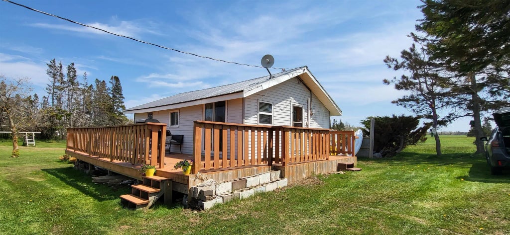 This cute three bedroom cottage has seen many improvements over the past few years. Fully insulated walls and ceilings, partially gyprocked, just needs a few more finishing touches. New laminate flooring, heat pump, vinyl windows, metal roof, new deck facing the ocean for those great views and newly renovated bathroom. There are three bedrooms, a full bath, open kitchen area and large living room. The living room has patio doors leading to the front deck for summer BBQ's and just relaxing and enjoying the view. There is also an RV pad, which allows hook up to electricity and sewer. Located at the end of the lane, there will be no through fare traffic! What a great spot for kids and grandkids!