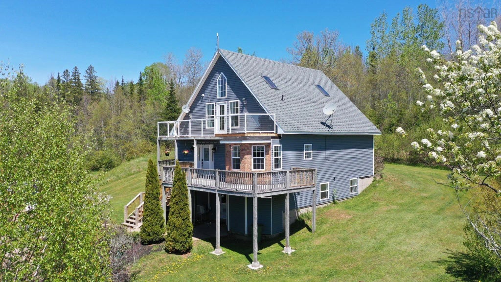 This custom built country home, built in 1998, offers country living minutes from Wolfville and New Minas in the Annapolis Valley. With only an hour commute to HRM and the Halifax Airport, it is exceptionally easy to access. This 2768 sq ft home is situated on a 3 acre lot, just a short distance from Lumsden Pond Provincial Park with its excellent swimming facilities. Located only minutes to Acadia University and the many nearby local vineyards. This amazing home offers 3/4 bedroom, office/bedroom, recreation room, cold room, 2 1/2 baths and utility room. The Great Room has 22 foot cathedral ceilings with post and beam look and skylights that offer loads of natural light. The Great Room has 100-year old refurbished hardwood floors and a built-in bar. The loft Primary Bedroom also has cathedral ceilings, skylight, and includes an ensuite bath. An added bonus in the Primary Bedroom is the glassed 30x10 deck with great views! The home is easily heated with in-floor lower level radiant heat, hot water baseboard throughout main level and a 24000 BTU Mitsubishi Mini Split on the Main Level and a 15000 BTU Mini Split on the lower level. Call for your personal viewing.