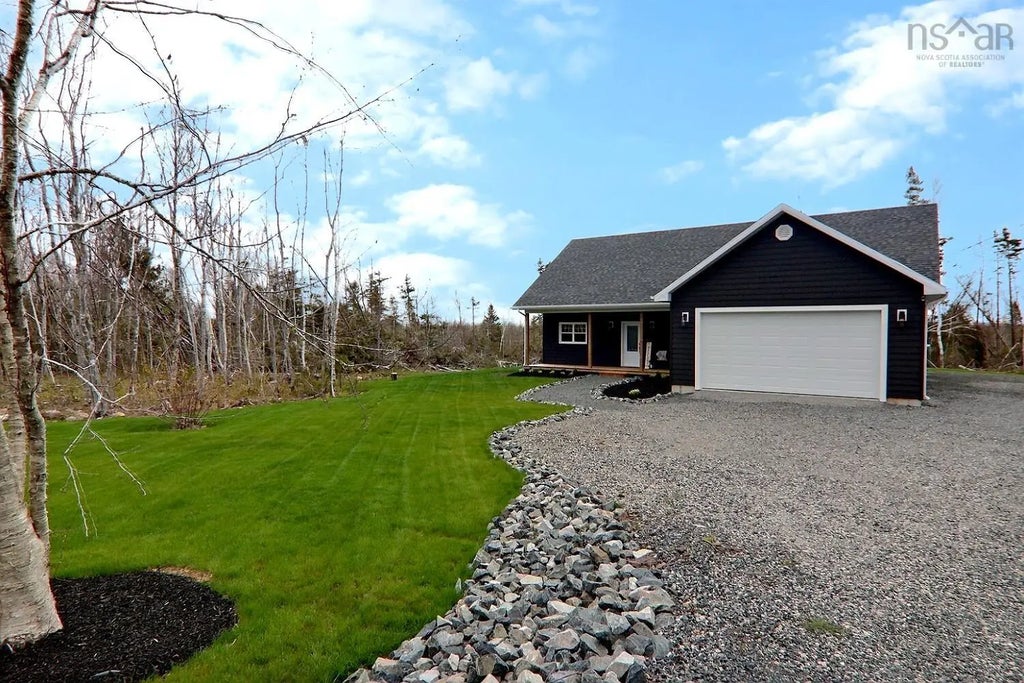 Greetings from 1376 Brickyard Road, Albert Bridge. This stunning newly constructed home is situated on a beautiful private lot with an acre of land, conveniently located only 6min to Mullins Rite Stop, 10min to the Mira Boat Club, 18min to the Regional Hospital, and walking distance to the Mira Gut Beach! Encompassing 1560 sq ft this custom home, built on a slab consists of 9 ft ceilings, recessed lighting, crown moldings, modern doors / trim, in-floor heat, a generator panel, and not one but two ductless mini split heat pumps! This impressive home features a large front foyer, spacious living & dining area, a contemporary kitchen boasting white shaker cabinets, undermount lighting, black fixtures, SS appliances and timeless subway tile backsplash! On one side of the main living area you'll find 2 good sized bedrooms, both with closets and a 4 pc main bath, on the opposite side you'll find an impressive primary bedroom, featuring a 3pc en-suite and walk-in closet. The attached garage is fully finished and if needed could easily be converted into additional living area depending on one's needs. The landscaped yard features mature trees, greenery, a covered front deck and plenty of parking. Call today, and capitalize on this rare opportunity to purchase your NEW home!