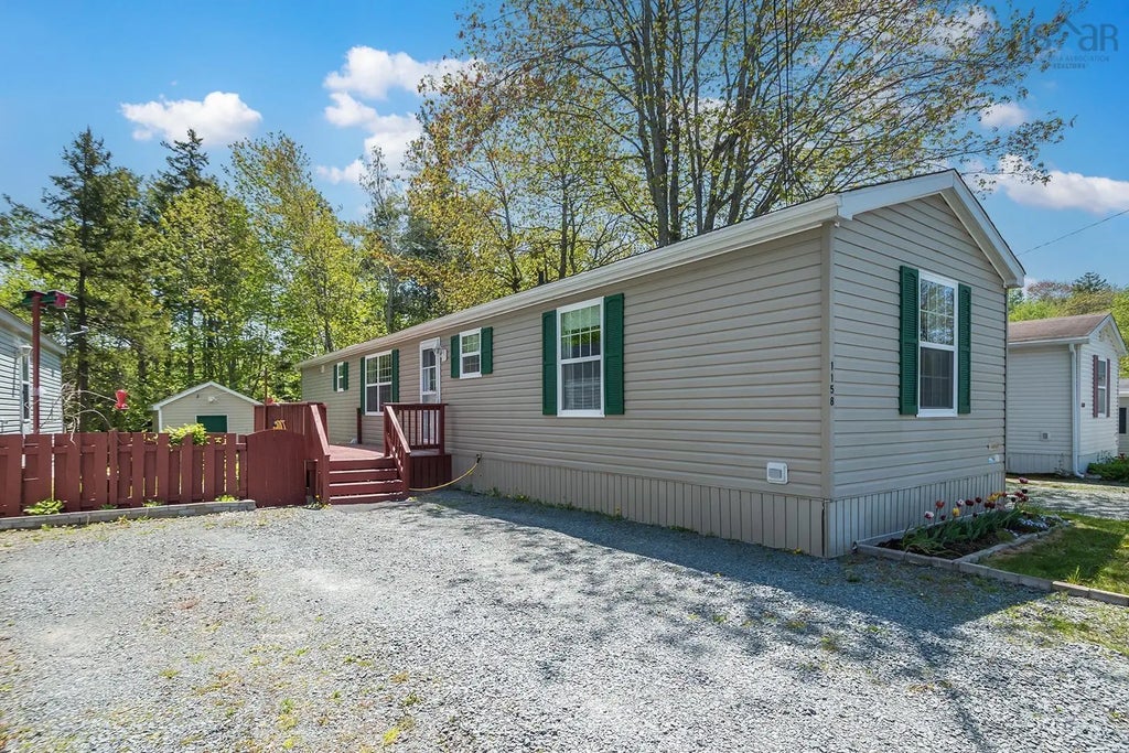 Stop renting & start living! Welcome to 1158 Susan Drive, a 910 sq ft mini home in the heart of Beaver Bank. This 3 bed 1 bath home is situated on a large lot in the Woodbine Community Trailer Park, with a double car driveway, shed, deck & partially fenced back yard. This home has experienced numerous upgrades over the years including a new heatpump in 2018, flooring, countertops & backsplash, electrical & plumbing and more. Inside you will find a fantastic layout with 3 decently sized bedrooms, a large full bath/ laundry, spacious living room & eat-in U-shaped kitchen with tonnes of counter and cupboard space. This is the perfect place to raise a small family, care for pets, retire or simply begin your homeownership journey! Call now.