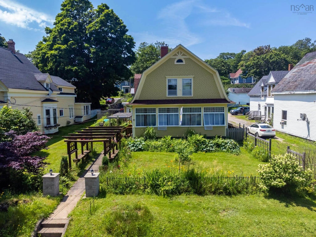 This 1910 Dutch Colonial that was built by carpenters from the french shore, rests on a poured concrete foundation. Known in the day as the Dixon residence, its street to street lot fronts First Ave where the water front and Trans Canada Trail are a block away, while the back yard ends on Queen St. where there lies a string of large ornate homes built by the Loyalists. Most all of the woodwork remains intact & functional, from the built in cabinets and original glass to the dining room plate rail & the wooden door knobs & the skeleton keys that were passed down by the 2 previous owners. The front sunroom is designed to generate passive heat that flows across a double dutch door, & on warmer days the 4 large windows, consisting of 40 panes each, latch open to allow the ocean breeze to pass thru. The pantry has been left original due to its ability to store lots of canned goods & utensils, while the rest of the kitchen went into a complete make over as well as the addition of the great room to expand its social events. This great room was engineered for a flat fiberglass roof, allowing it to be used as an upper deck in the future. Outside its garden doors you will find a large concrete patio, green house, tiki bar, fruit trees, cherry, grape, nectarine, quince & raised beds. A maple staircase leads you upstairs to a large common area where there are 4 large bedrooms, 2 with walk in closets , a 4 pc bathroom & a linen closet that is heated by the chimney chase behind for warm linens in winter. The basement has half at full height, & the other an above ground 4' high storage area, work shop, oil tank & furnace as well as hydro panel & HW tank.