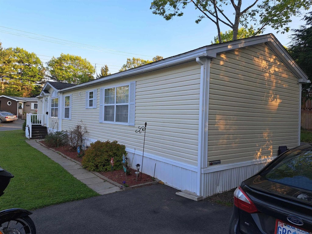 Parkwood Court, a very desirable mini-home park. You'll love the open concept cathedral ceilings in the main living area and the primary bedroom comes complete with a full ensuite & walk in-closet. The property also offers a heat pump, double paved driveway, landscaped lawn, and a shed. All appliances are included in the purchase price. Easy access to Hwy 101 & short walk to the Irving Big Stop. New buyers will need park approval. Lease amount for the park is about $225.00, to be confirmed at the Park’s office. Book your viewing today!