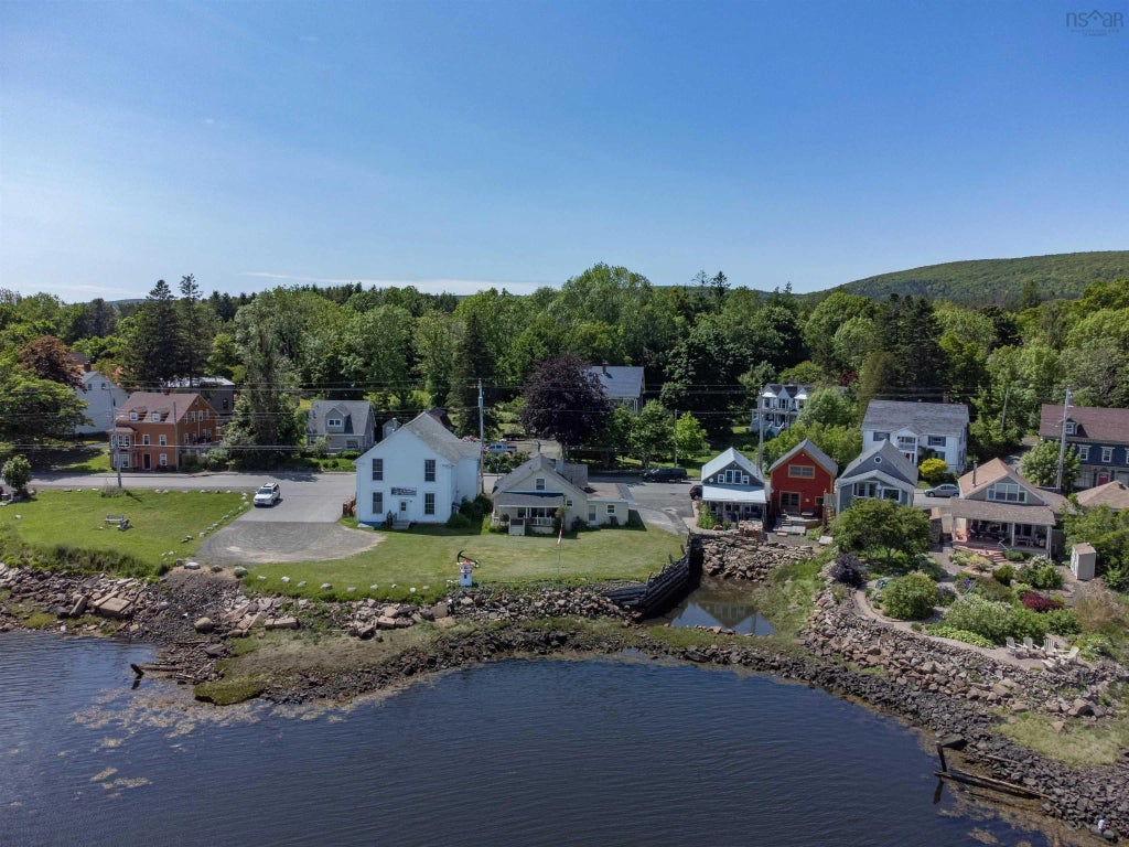 Check out this rare find! In the heart of Granville Ferry this eye-catching log home sits on the Annapolis Basin shore. This 3 bedroom quality built log home welcomes you to a very inviting eat-in kitchen with featuring floor to ceiling glass panels on each side of the patio doors which open to a cozy covered deck overlooking historic downtown Annapolis Royal. Pour your coffee and start your day savoring the peaceful setting as the sun rises over the Basin. Witness the amazing Fundy Tides meandering in and out along your backyard. Life is good! Ample storage in kitchen cabinets plus built-in open shelving spot for displaying dishes, jars, preserves, etc. Fireplace with wood burning insert is the focal point of this spacious living room. Softwood floors throughout the house. Off-setting the living room are a bathroom/laundry room, and bedroom, plus small foyer entrance to the main street. Follow the sturdy, crafted staircase to the second level or two mor bedrooms, plus storage area. Exposed log walls in parts of the house add to its character. The covered deck just off the kitchen is the perfect spot for gatherings, quiet evenings or just relaxing and enjoying the expanse of the sea from your home. 100 feet of waterfrontage, heat pump in kitchen, electric baseboard heating. Attached garage (13'8x26'6) Measurements are approximate.