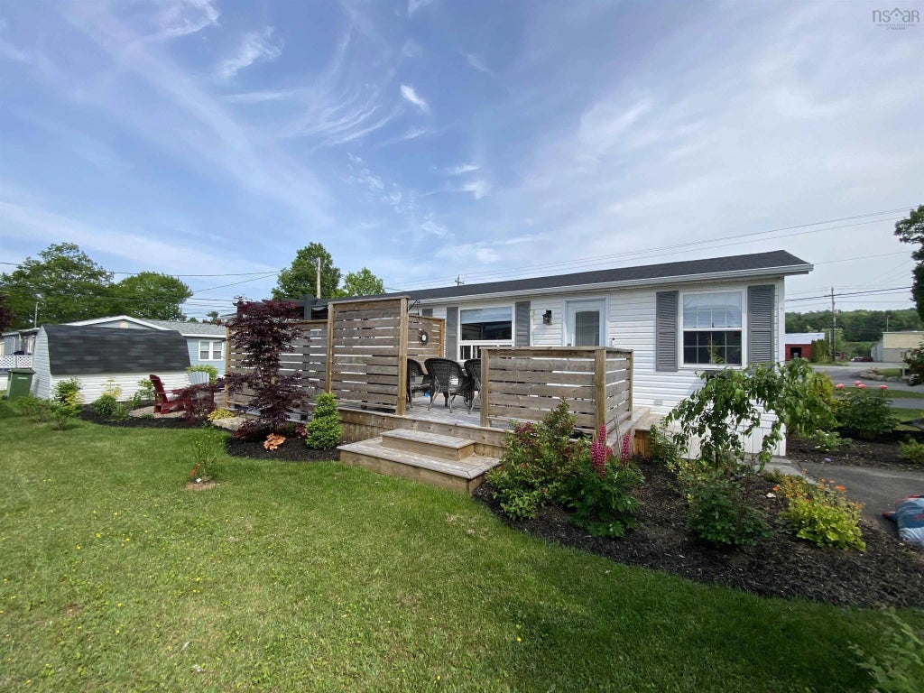 Looking for affordable? This mini home has been completely renewed, inside and out! Spacious kitchen has new island for seating, countertops, cabinets, fixtures, garburator and Whirlpool appliances, all included. The living area is light and bright with a heat pump for added warmth or cooling. Down the hall, open laundry facilities, an updated bath, large bedroom/den (was two rooms, could easily be again) and the primary bedroom. Lots of IKEA storage throughout with new flooring, paint, baseboard heaters, etc. Outside, beautiful landscaping and multiple decks for relaxing and entertaining plus a shed and paved drive. Most furnishings negotiable. Lot fee $228 mthly which includes water and sewer. Buyer must be approved by Killam Properties for tenancy. No dogs allowed; two indoor cats permitted per household. Parkwood Court is well maintained and conveniently located, with easy access to New Minas, Kentville or Highway 101. The community is surrounded by trees and has approx. 120 residential sites.