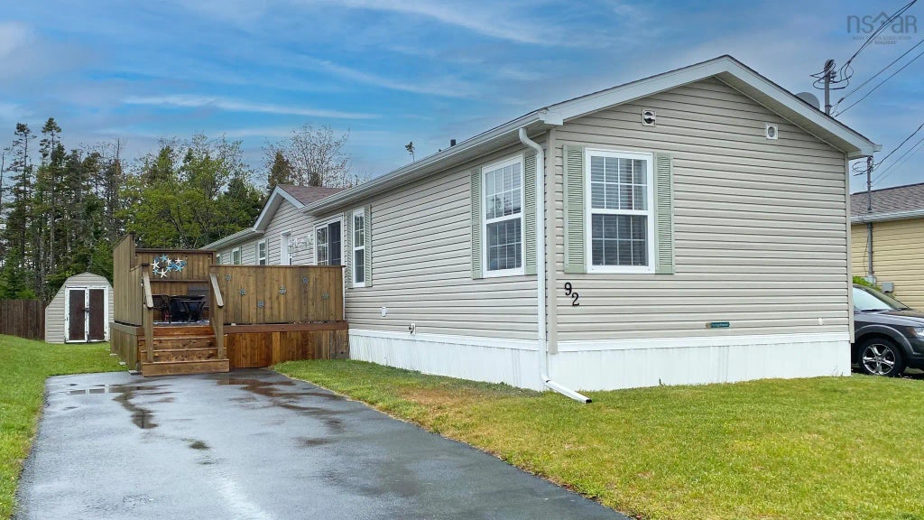 Welcome to the neighbourhood of Birch Hill Estates, a quiet well-maintained community! This 16 years young, 1120 sq ft mini home is ready for new owners. Inside, almost everything has been updated; new vinyl plank flooring throughout, new bathroom, new custom Hunter Douglas window coverings, new paint, all new stainless appliances and new patio doors. Pulling up to this 3 bedroom home you will find easy parking for 2 vehicles situated on a level lot backing onto a green belt. The home sits across from a large playground/open space. Plenty of on street parking for when the friends drop by to enjoy the beautiful new expansive deck. You enter off the deck into a wide open kitchen, dining and living space. Loads of natural light pours into this smoke-free home. The almost new heat pump provides both heating in winter and cooling in summer. The vaulted ceiling adds to the feeling of spaciousness. There is a shed to store your tools. This home is perfect for starting out or winding down. Make your appointment to view now. Check out the Virtual tour.