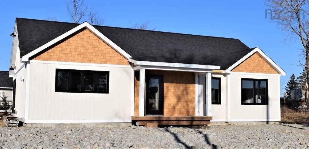Are you looking for a beautiful, brand-new bungalow in a quiet neighborhood with ocean views? Look no further! Located in the beautiful seaside village of Chester, known for its amenities such as golf, sailing and fine dining, this lovely 3-bedroom, 2 full bath home is ideal for families or retirees looking for a peaceful retreat. The open concept kitchen and living room are perfect for entertaining guests or simply relaxing with family. The kitchen features ample storage and an island with a beautiful quartz countertop, perfect for meal preparation or casual dining. The wood accents between the living room and kitchen give the space a cozy natural feel, while the vinyl click flooring is both stylish and durable. The ample foyer features a ship lap accent wall and a built-in bench with coat hooks above for ease of access and use. The living room boasts plenty of natural light, thanks to the large windows and 8’ patio door. This home has a heat pump and a propane fireplace, ensuring it stays warm and cozy throughout the year. The triple glazed black casement windows and vertical siding provide both a modern and timeless look to the exterior of the home, while the upgraded vinyl shingle accents add a touch of style. And with views of the waters of Mahone Bay, you'll never tire of the stunning scenery this area has to offer. Don't miss out on this amazing opportunity to own your dream home in a peaceful, serene location. ***Please visit Realtor website for more information ***