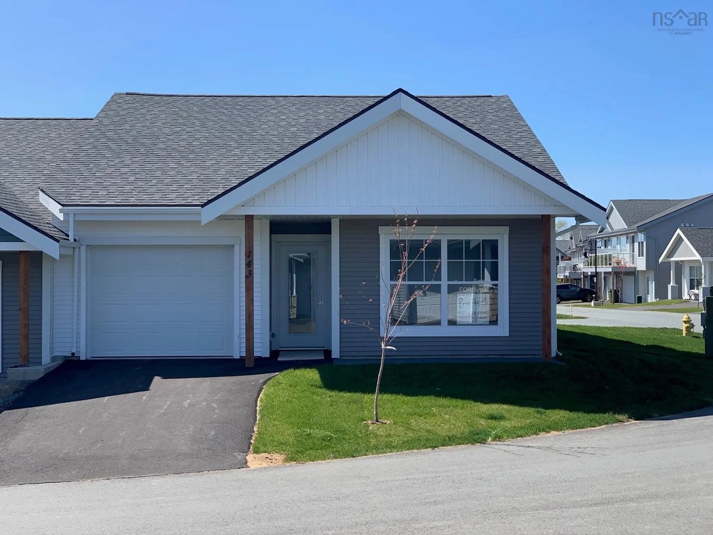 Bright end unit! Fabulous alternative to a condo apartment with unparalleled lifestyle. Provident's bungalow design - The Ocean Pearl - offers over 1200 sqft of true single level living and all the comforts and efficiency of a brand new home. Enter the foyer off your sweet covered porch and find an attractive open layout featuring a bright kitchen with granite counters, a terrific island for prep work and breakfast, a large walk in pantry, gorgeous easy to maintain laminate floors (carpet free home!) and outstanding comfort of a heat pump. A super spacious master bedroom is a true retreat with walk-in closet and ensuite with double vanity and easy to clean large shower. A second bedroom has french doors for multi-function space as a den or guest bedroom. Discrete second full bath perfect for guests. In unit laundry and a single car garage for your private and personal use. All the convenience of total lawn care, snow removal, exterior home maintenance, and water are included, not to mention use of the totally stunning club house with library, party space, heated out door pool and furnished one bedroom guest suite available for rent to residents. Walk down the street two minutes and you're on the incredible boardwalk at MacCormack's Beach, and a stone's throw from restaurants, shops and services. Just 7 minutes to the Dartmouth General or 10 minutes to Dartmouth Crossing. You can live on the beach and still be in downtown Halifax in 30 minutes or less. Several units to choose from and still time to choose your finishes in some units! Photos shown are of model home in same layout.