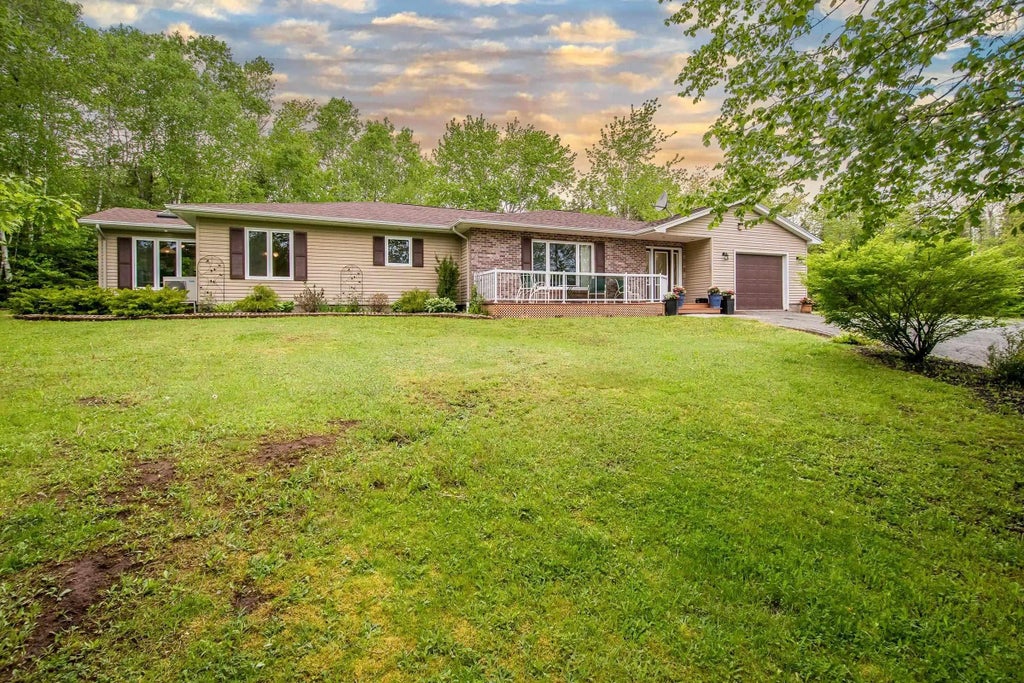 You are going to love living here because it feels like cottage country all year round. Beautiful bungalow on slab, over 2000 sq ft of efficient living space all on one level, sited on nearly 2.5 acre lot with a natural pond, mature trees & low maintenance landscaping. Spacious foyer opens to a large & flexible great room, kitchen with ample cabinets & pantry, and separate dining area with additional built-in cabinets/shelving, and brand new flooring just installed throughout this area. Two bedrooms; two full baths; primary has walk in closet & ensuite with soaker tub & separate shower. Enjoy nature from the inside looking out from the quiet & bright sunroom complete with skylight & large windows. Efficient heating with ductless heat pump and in floor hot water radiant systems. A convenient full house generator complete with automatic switch recently installed. Attached garage plus a large two level outbuilding for extra storage, plus multi car parking space. Majority of interior freshly painted in 2021; new dishwasher in 2022; chain link dog run in 2021. Enjoy your peaceful outdoor space from your front verandah or the large private decking at the rear, and do not be surprised to spot deer, rabbits, pheasants, grouse and many other bird species.