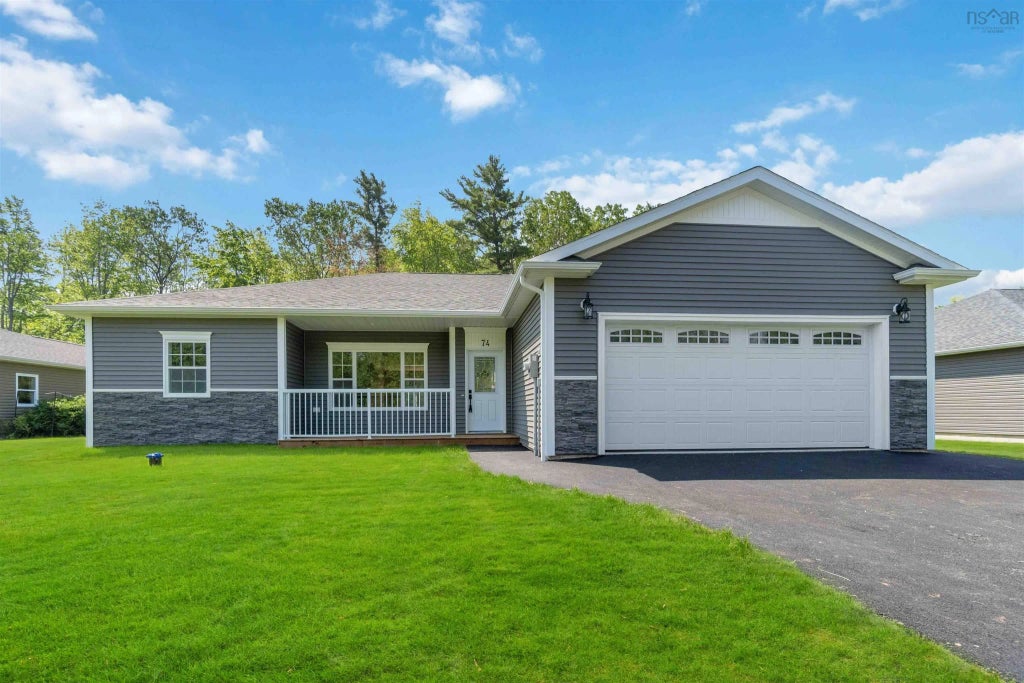 This brand new 1600 sq ft, three bedroom, two full bath home has been immaculately finished. From the tray ceilings, quartz countertops, engineered hardwood flooring throughout to the 7 year Lux home warranty, this home is perfect for any family. This home has been finished with large bedrooms, ensuite bath, walk in closet, double garage with epoxy floor and more. Spacious eat in kitchen has a beautiful island and the living room is open concept. The heating is in floor radiant electric heat and for the hot summer there is also a ductless heat pump. Enjoy the pergola on the large back deck and this home is seconds away from Eagle Crest Golf Course and very close to Kentville, New Minas and all amenities.