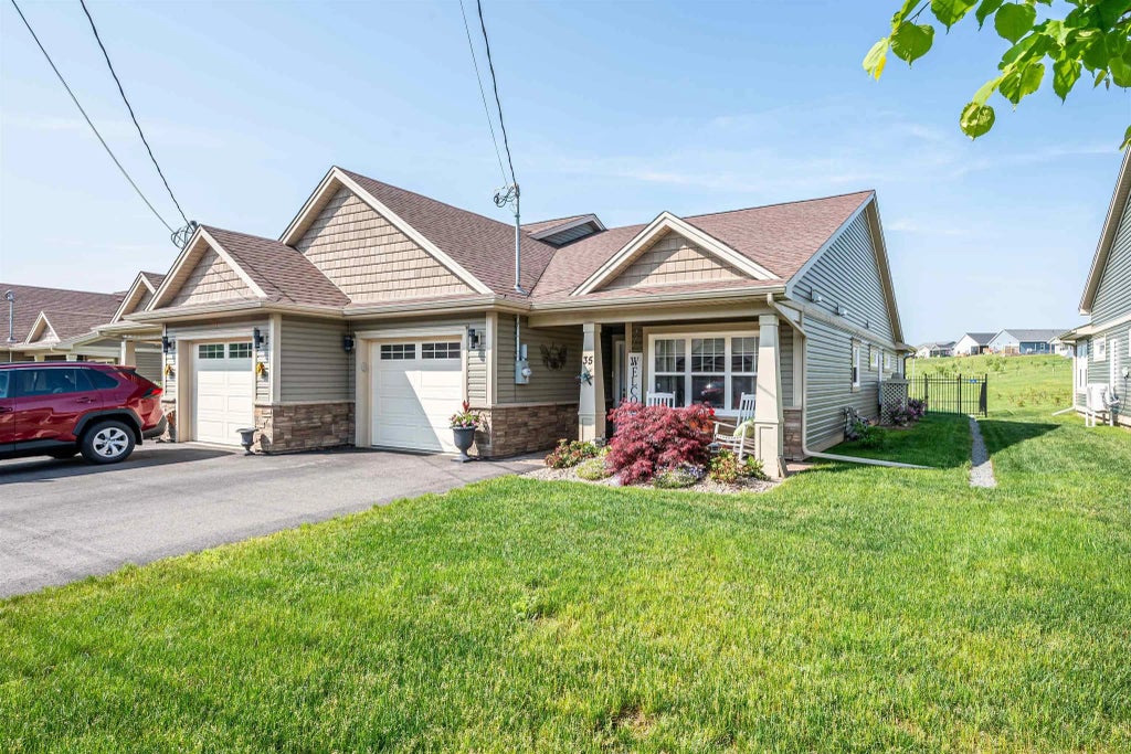 Are you looking for the ultimate adult community? Look no further. What we have here is a two bedroom two bath one level home in "The Crossings". This home is up to date, "move-in" ready with a plethora of desired features. Granite kitchen counters, custom kitchen cabinets (find the secret cupboard),matching granite vanities and Luxury vinyl plank flooring throughout the entire home. Primary bedroom ensuite has a large walk in shower and walk in closet facing the fully fenced/gated landscaped backyard with an unobstructed view of the park area of "the Crossings". Also included are 6 high end Samsung appliances and ALL custom Hunter Douglas window coverings and shades as well as two gorgeous stained glass window inserts. Ductless heat-pump cooling and/or baseboard heating (no oil). The no-step front entrance, wider doorways as well the attached single garage offers years of independent living. The Crossings is an active pet friendly ADULT community located 5 min out of Windsors amenities, 35-40 min to Bedfords shopping centres. Wine vineyards and trendy restaurants with local shops are within 20 minutes or less. Skiing, hiking, walking, take your pick, it's all here. Make your private viewing appointment today!