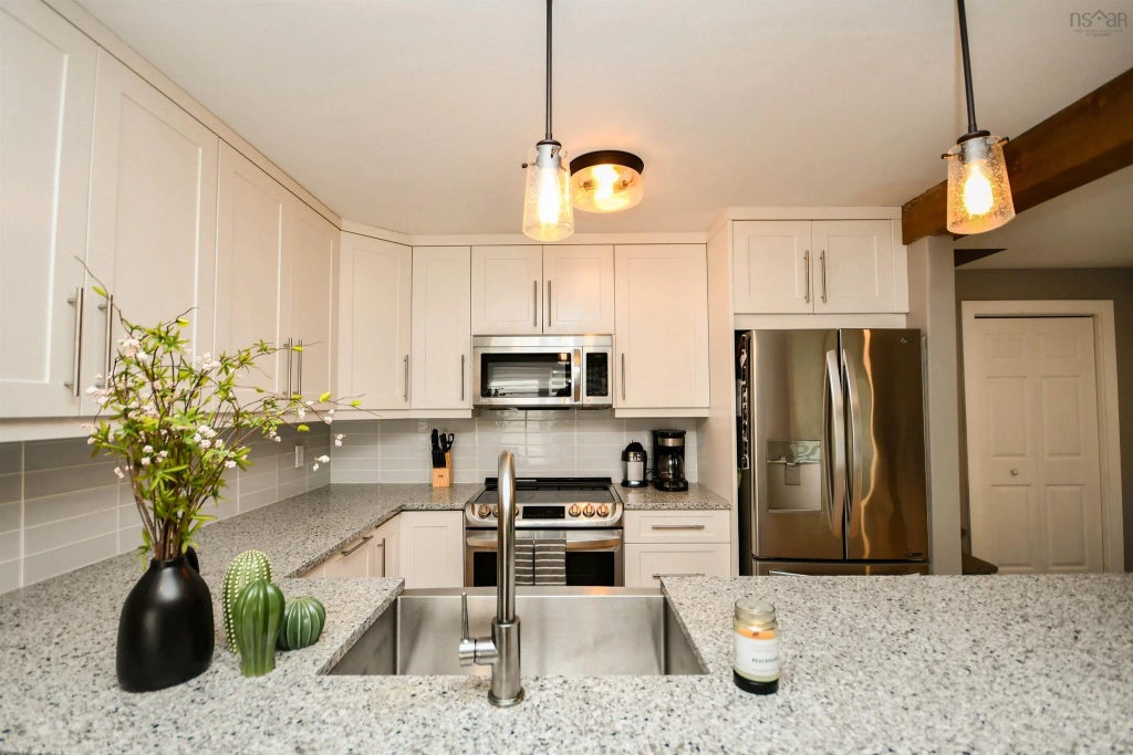 Welcome to this delightful condo on Shore Drive, across from the Bedford Basin Yacht Club. This unit has a renovated kitchen with granite counter tops and all stainless steel appliances. The ceiling to floor windows allow an abundance of natural light into the open concept living/dining area on the main level. A few steps up you will find 2 great size bedrooms, a 4-piece bathroom and in-suite laundry. You have your own private patio on the main level, as well as a community deck area to the side of the building. This property is in walking distance to so many amenities; shopping, parks, swimming pool, biking/walking paths and so much more!